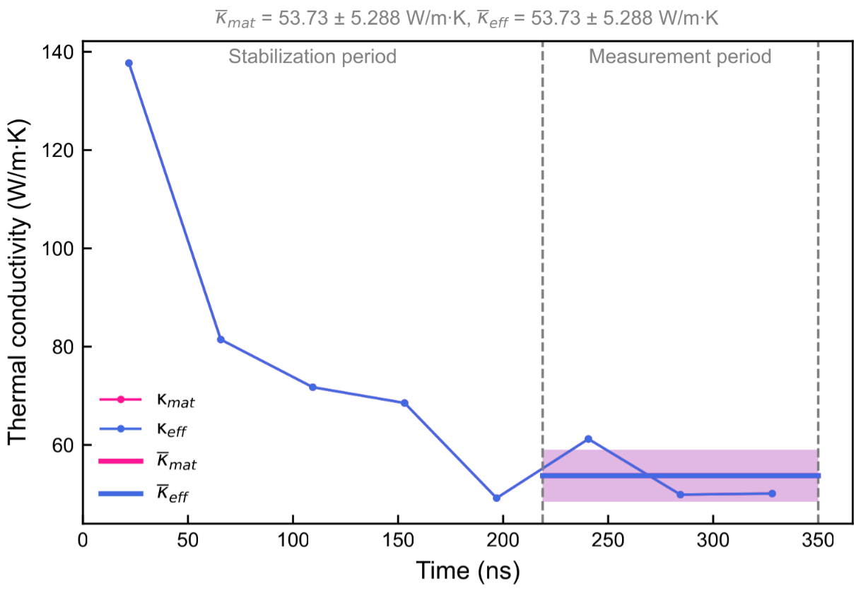<figure><img src="https://664157142-files.gitbook.io/~/files/v0/b/gitbook-x-prod.appspot.com/o/spaces%2F7rdk0xqy0YirGWqTjhkv%2Fuploads%2FLfTirJxUhmchFUmowFR4%2Fimage.png?alt=media&#x26;token=a996c08f-8f25-4f2a-a806-213aa29a7487" alt="" width="563"><figcaption><p>Thermal conductivity convergance and averaging over the steady state period.</p></figcaption></figure>