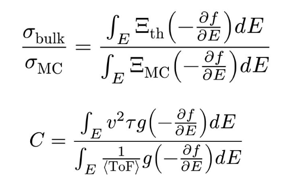 Also, we want our prediction to match the bulk electron conductivity before we proceed to the calculations on nanostructures, so we need to compute the mapping constant as: